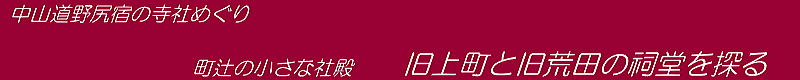 野尻宿の古老によれば、昭和期まで、宿場街の各街区(上町・本町・荒田)ごとに地区の神仏を合祀した小祠堂があって、集落の氏神のように扱われていたそうです。本宮や本堂は妙覚寺の境内やその背後の尾根峰に祀られていたそうです。 とはいえ、今でも祠堂があるのは上町と荒田だけで、宿場の中心だった本町の祠堂は見つかりません。本町については、現在、地蔵菩薩と石仏群がある場所がそういう祠堂に当たるものかもしれません。 ◆上町と荒田の祠堂を探索する◆ |