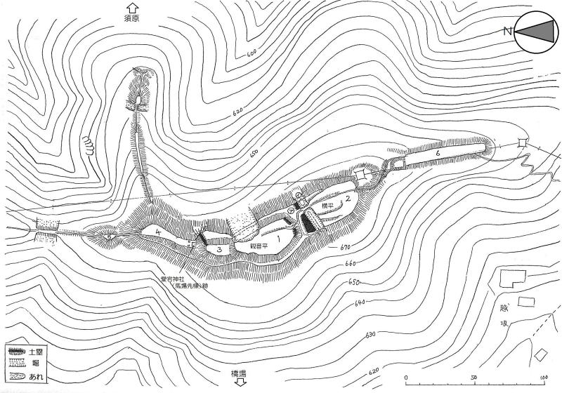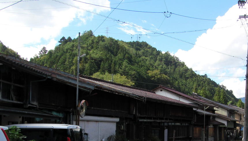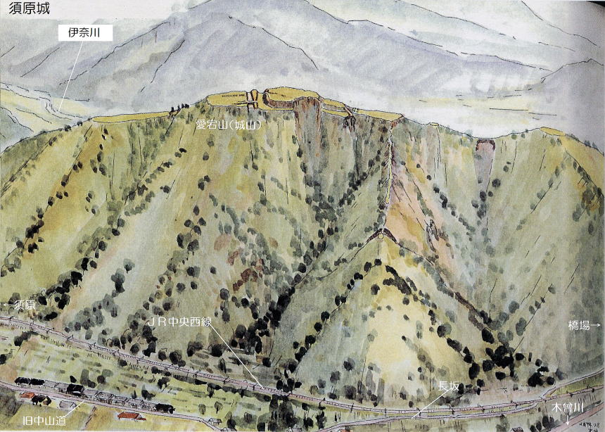 おそらく15世紀半ばまでには、現在の定勝寺境内の背後(南西方向)にある愛宕山の山頂に須原城が築かれ、須原はその城下町として発展したようです。須原城は木曽氏の本城として築かれた山城で、戦国時代に木曽義在から義康の代に福島の上之段城に本拠を移すまで木曽氏の本拠地でした。義在の治世までは福島と須原は、時に応じて領主が行き来する、同格の城下街として統治の拠点となっていたと見られています。
