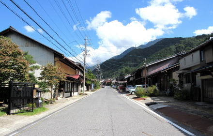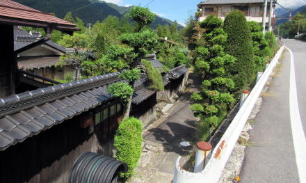もうひとつは、1715年の木曾川大氾濫で江戸初期からの須原宿が破壊された後、現在地に宿場街が再建されたことです。この移転再建によって、街並みが少し長くなっにもかかわらず、住民の家数はさほど増えなかったので、町割りのなかに空き地が生まれたようです。