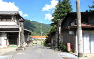 今回の旅の出発点は、須原小学校跡の門柱と須原宿の広小路跡の辺りです。街道の反対側は、阿弥陀堂跡ならびに鹿嶋社への入り口です。ここも広小路だったようです。