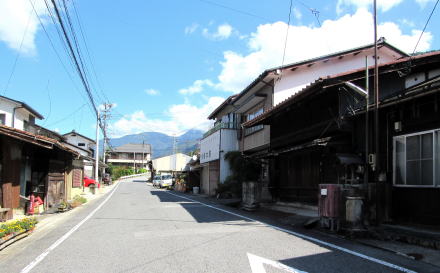 江戸時代の中町(仲町~本町)は須原宿の中心部で、本陣や脇本陣、問屋などの町役人家門が住まわっていました。本陣は木村平左衛門(問屋兼務)、脇本陣は西尾次郎左衛門(問屋兼務)でした。脇本陣の西隣は年寄役の島瀬九郎右衛門、東隣は同じく年寄役の太田徳左衛門、さらに東隣も勘助と、いずれも間口7間の旅籠が軒を連ねているので、壮観だったでしょう。