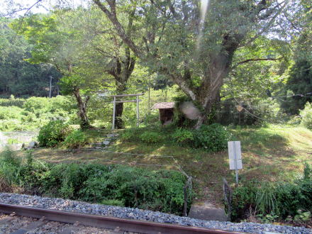 ![]() ▲宿場南側の段丘上を通るJR線路の上の斜面にある平坦な境内 山桜の大木が並んでいるので、春は花見の場所なのかもしれない。 ![]() ▲簡素な祠だが、体節に保存されている ![]() 木製の鳥居の前から宿場街と木曾川の谷間を見おろす▲ |