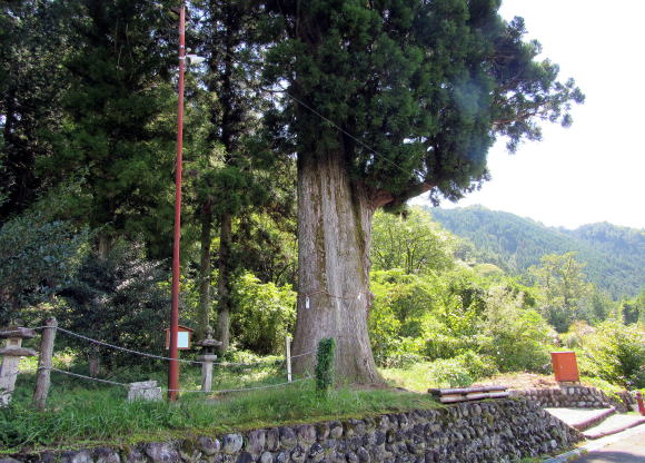 ![]() 大杉の脇から鹿嶋社の境内を眺める。本宮社殿を中心にいくつもの境内社・摂社が衛星のように配置されている。 ![]() ご神木の大杉: 幹周りは8メートルで、樹齢はおおそ800年だと推定されている |