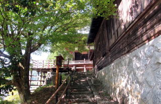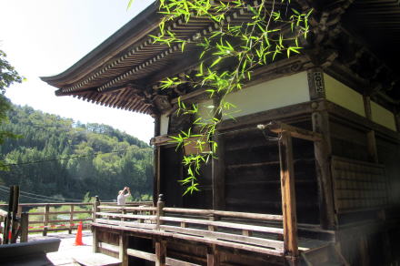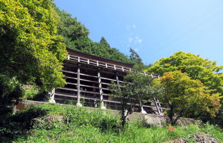 ▲本堂前の舞台は、清水寺の舞台を小ぶりにしたもの