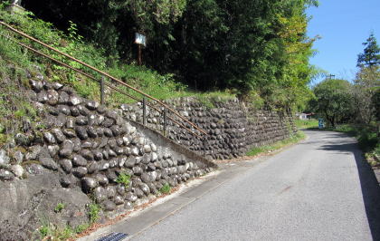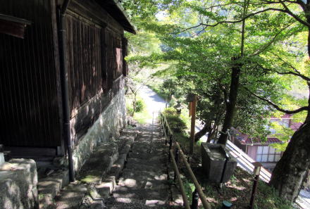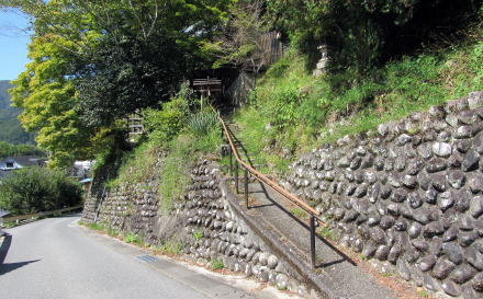 観音堂下の道路から西に上る石段参道がある