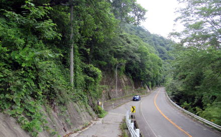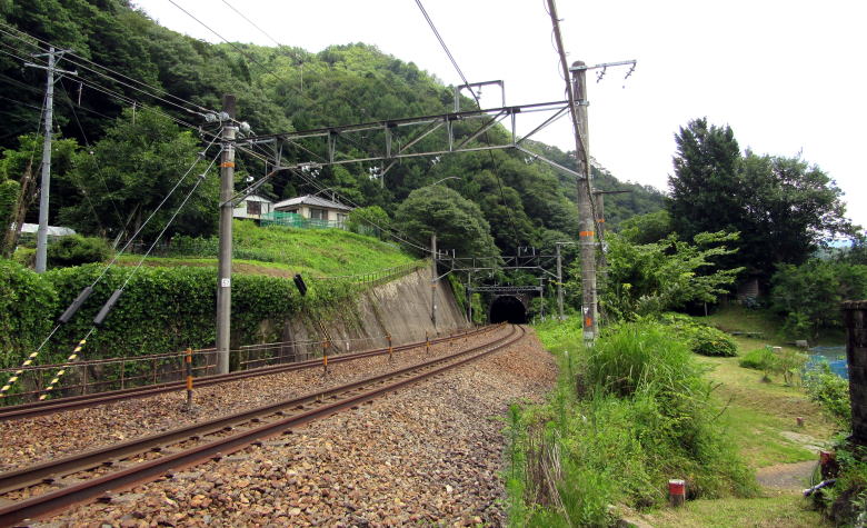 ![]() 江戸時代には写真中央部のトンネル上の山腹斜面から右端の観音堂まで街道は下ったきたという |