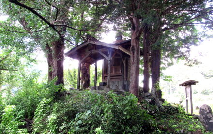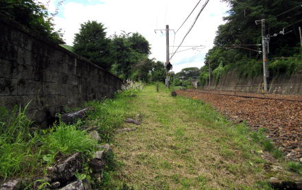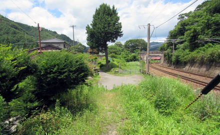 さて、往古の中山道はトンネルの上辺りから北西向きに斜面を下ってきて観音堂の手前に出たようです。そこから民家の東側、鉄道の西脇を通っている草道が旧街道の跡とされています。平坦な地形なのに草道は幅1メートルもないほどなのは、鉄道の敷設によって旧街道はおおかた埋もれてしまったからでしょう。