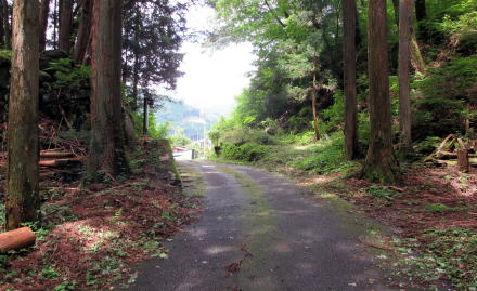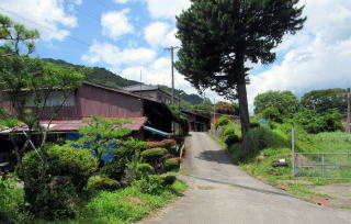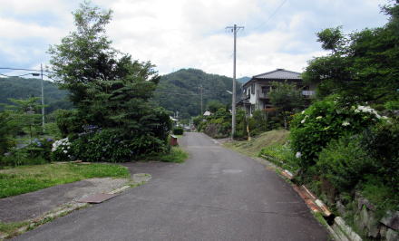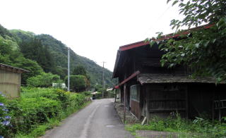 ◆板敷野から神戸へ◆ 沓掛の北隣に位置する板敷野では、木曾川が西に蛇行しているせいで山裾が西に延びて、河岸段丘面の傾斜がいくらか穏やかになります。旧街道に沿って集落の家並みがありますが、ここでもやはり過疎化が進んでいます。