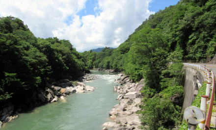 ▲両岸が崖岩壁となっていて、街道はつくれそうもない