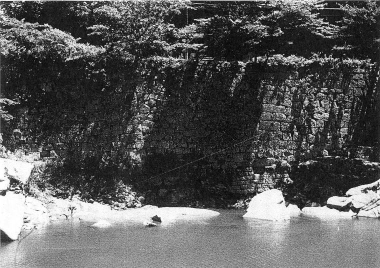 ▲活況用の石垣護岸跡:撮影は1950年代か。出典:『木曾路』