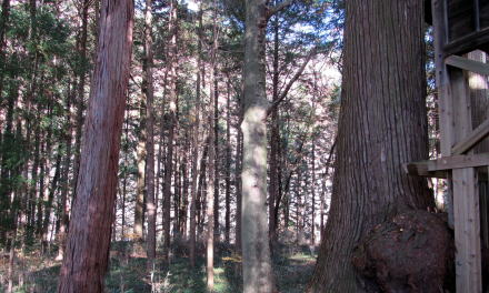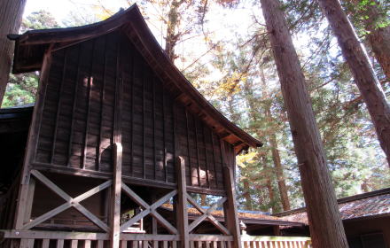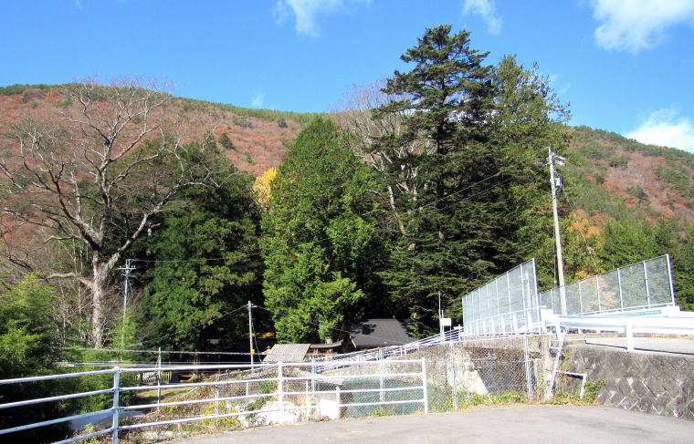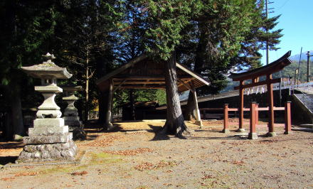 八幡宮は、無佐沢川右岸の小さな尾根の背が北西方向に延びて木曾川河岸の小丘と出会う場所にある。 ![]() ▲無佐沢川の左岸から八幡社の杜方向を眺める ![]() ▲鳥居の前に城館をめぐる桝形虎口跡があったという ![]() ▲石灯籠の先にある拝殿。背後に本殿がある。 ![]() ▲本殿の稜妻側に木製の「うだつ」が設置してある ![]() ▲風雨から本殿を護るための特殊な「うだつ」 ![]() ▲鳥居の脇に基礎特有の奉納相撲の屋根付き土俵がある ![]() ▲本殿背後の社叢樹林帯(ヒノキ、モミ、ケヤキ、スギの混合林) この神社には鎌倉時代の作と見られる木製の神像2体が伝わっている。⇒関連記事 |