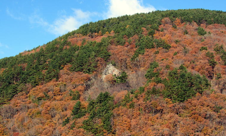 ![]() 古くから人びとの信仰の対象、祈りの場であった明星岩。昭和期には近くに祠があったという。 |