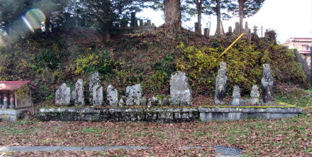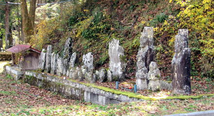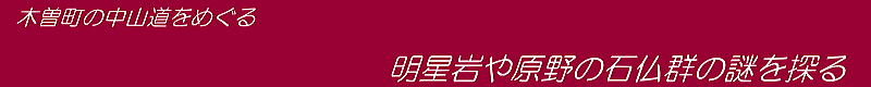 山腹から岩が露頭している基底部には、木曾地方で山岳信仰(修験)の対象となっている御嶽山と木曾駒ケ嶽を祀った石碑が置かれています。 ◆無佐沢川河畔(原野)の石仏群◆ 旧中山道沿い、原野の無佐沢川の谷間の草原に不思議な石仏群があります。石仏の列の中央部には、小さな馬頭観音が集められています。これは、近隣の中山道沿いに1町ごとに建てられていたものをここに集めたものでしょう。ほかには西国観音霊場巡礼の奉納搭、庚申塔、二十三夜塔、念仏や経典の奉納搭などがあります。 ◆往古からの密教寺院の伝承◆ ところで、林昌寺の前身と見られる洗林寺という真言密教の寺院は、すでに平安時代後期(12世紀半ば)には密教修験の拠点としてこの近くにあったそうです。 平安末期、この地には中原兼遠という豪族が館を構え、大木曾の荘園を統治していて官位を保有し、朝廷とも浅からぬ関係にあったとされています。 |
