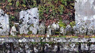 ![]() ▲無佐沢川の畔から明星岩がある大きな尾根を眺める。 画面中央は八幡社の杜。 ![]() ▲無佐沢川の岸辺。石仏群の下流部の様子。 ![]() ▲石仏群がある河岸段面の草地の下を無佐沢川が流れる ![]() ![]() ![]() ▲舟形の小さな石仏は道路改修にさいして集められた馬頭観音 ![]() ▲原野では、はるか南東方向には木曾駒ケ岳の秀峰が眺望できる ![]() ▲石仏群の背後の段丘面には往古、仏堂があったか 旧中山道は無佐沢川の谷間を越えて原野集落に入っていく ![]() ▲無佐沢川の対岸にも庚申塔や石仏が集められている 旧中山道の南脇、無佐沢川の両河畔に石仏群が祀られている氾濫原=河岸段丘から八幡宮境内までは、ひとまとまりの特別の場所という印象がある。無佐沢川左岸の石仏群の前から北方に八幡宮の鎮守の杜が見られる。 石仏群のうち、向かって右端の4基は鎌倉時代につくられたかもしれない。石仏(石像)としてはきわめて珍しく貴重な文化財ではないだろうか。別記事で、これらと原野八幡群に伝わる木製の神像2体との関連を探ることにする。 |