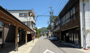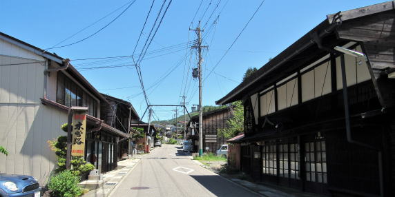 ことに米屋旅館と湯川酒造が旧街道を挟んで向かい合う地点の街並みは、すこぶる心惹かれる風景です。米屋旅館から「木曽おぎのや」などの町家造りをじっくり眺めて楽しみましょう。この辺りでは出梁造りの町家が保存されたり復元されたりしていて、往時の木曾路を彷彿とさせてくれます。