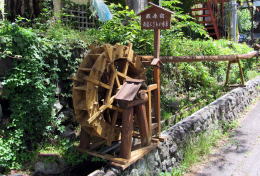 ▲高塀跡脇を流れる水路の小さな水車
