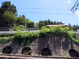 さて、旧街道はこの先の跨線歩道橋まで麓を往き、そこで山側に折れて峠をのぼることになっていたそうです。鉄道や新道が建設されたことで、地形も街道の道筋や街並みの姿も大きく変わりってしまったようです。