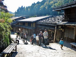 Here for some length two ways goes in paralell. The one goes down is the old Kaido and another one upward is the new, built for car traffic. A few guesthouses and shops selling folkcraft-works for tourists are standing along the old one.