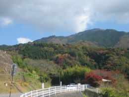 南を望むと、標高2191メートルの巨大な山、恵那山が見えます。