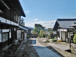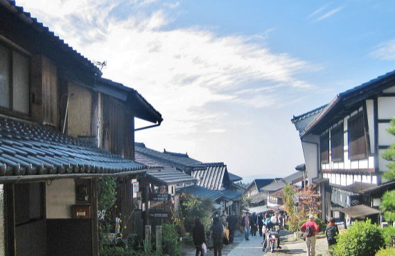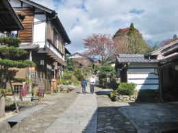 そのような景観は、里山風の庭園のなかに宿場街があるようなイメージをつくり上げています。田園風景なのですが、それが信州側の木曾路とは違う「洒落た都会風」の趣をもたらしているのかも。