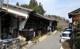 There are the old inns, Maruya, Tsutamuraya and Omiya, standing side by side on a hill-terrace.