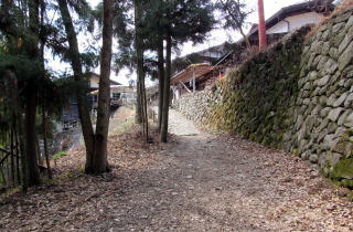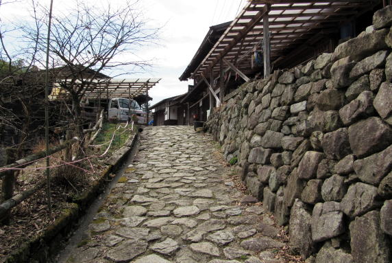 三つ目は、江戸時代の中山道です。大妻籠では神明集落のなかを通る小径がそうです。
