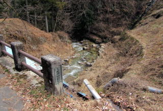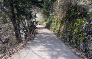 次は、男垂川の西岸を往く舗装した小径です。急坂を迂回したりして、荷車程度の車両を通行できるようにした尾根の麓の小径で、古中山道よりもずっと歩きやすくなった道です。ただし、男垂川の畔の道は、大雨が降ると川が危険なほどに増水したため、通れなかったかもしれません。