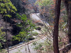 ▲古街道から谷底の蘭川の流れを見おろす