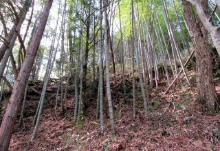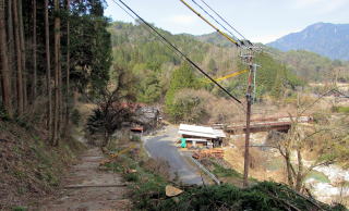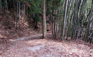 さて、古中山道は神明集落を抜けると竹林を下る杣道になります。杣道は、尾根の東端を回り込んで、蘭川に架かる大妻橋に連絡しています。