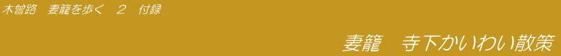 妻籠の街筋全体も素晴らしいのですが、私としては、古い家並みと町家の様子をとどめている寺下を歩くのが気に入りました。
