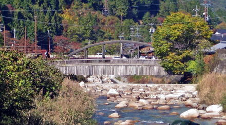 妻籠は、宿場街内の古民家が並ぶ家並み景観もいうまでもなく美しいのですが、街の周囲の風景もまことに風光明媚です。宿場街が置かれている地理的環境、河川や山岳の風景もぜひ楽しみましょう。 ◆蘭川の河畔風景を楽しむ◆ |