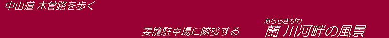 蘭川は木曾川の支流です。大平峠を源流として、妻籠の西側を流れ下って木曽川に合流します。伊那谷の飯田まで向かう大平街道は、尾根を縫いながらこの川の峡谷を往く道です。