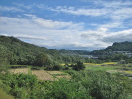 橋を渡った対岸にも、裾を崖で縁どられた山地のような台地があります。これは「牧ノ原台地」と呼ばれます。牧ノ原とは、古代に大和王権に軍馬を供給したことに因んだ地名です。