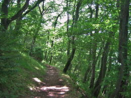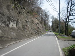 この展望台から「富士見展望台」までを結ぶ線の西側が、千曲川河畔に深く切れ落ちる崖になっています。