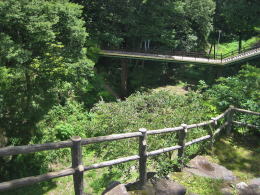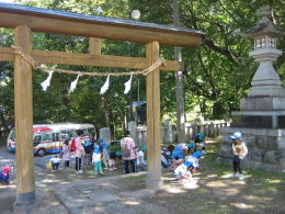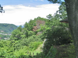 水の手の展望台の目の前は、谷を挟んで鹿島神社の境内です。