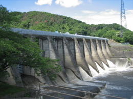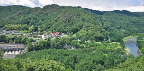 千曲川は小諸城の西側で大きく蛇行するため、巨大な浸食力と堆積力を帯びるので、それを抑えるために西浦ダムが設営されているのです。そして、この付近の川の高低差を利用して発電をおこなっています。