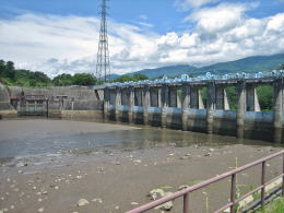 戻り橋から千曲川を眺めると、上流側は「高原を下る急流」に見え、下流側はダムによって水の勢いが抑制された「穏やかな水流」の趣です。
