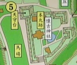 往時、帯曲輪の中央部には本丸御殿がありました。今では懐古神社があるだけです。