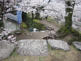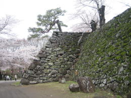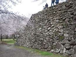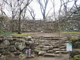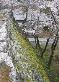天守台には今、北東端に山桜、南西端に赤松が植えられています。今では本丸の馬場跡は桜の名所で、春には天守台からの眺めはなかなか壮観です。