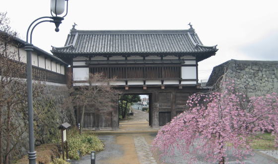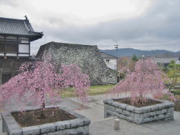 大手門に訪れた日、公園の枝垂れ桜は満開になっていました。