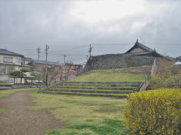 大手門の右横には、あたかも物見櫓の土台となっていたかのような高い石垣があります。が、大手門との城郭構造上の――たとえば一体となって桝形虎口を構成するというような――関連は見られません。