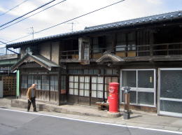 大手門公園から北に上り坂の小路を進むと旧北国街道に出ます。その辻で左手(西方)を見ると、しなの鉄道高架下の交差点の北側に古い大きな町屋があります。それが小諸宿本陣問屋場です。