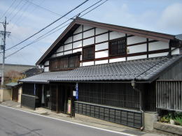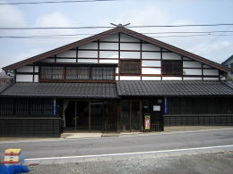 本陣と空き地を隔てた隣は山謙酒造の美しい建物。幕末期に問屋場として建てられた切妻造りで、本陣よりも間口が広くなっています。