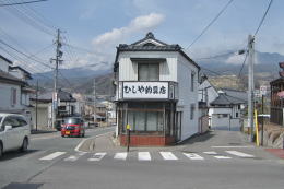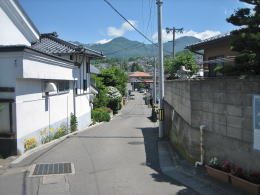 国道の左側の家並みの裏には、戦国初期に築かれた鍋蓋城の遺構、そして江戸時代の小諸藩城代家老屋敷跡地が横たわっています。