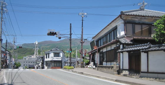 ▲昭和レトロな国道沿いの家並み 左奥は大手門