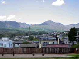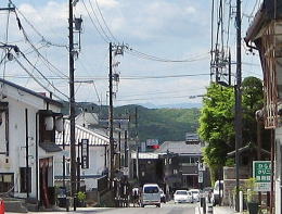 ほんまち町屋館の辺りから西方を眺めると、旧街道の上に千曲川対岸の山並みが浮き上って見えます。