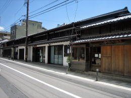その東隣の白壁の町屋が塩川五右衛門の店舗です。1742年の大洪水でこの一帯の店舗家屋が流失したのちに、本町庄屋屋敷として再建された建物。問屋も兼務したとか。