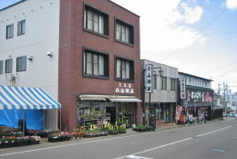 ▲「小山種苗」「丸二紙店」「はいばや」が並ぶ活気ある一角
