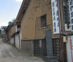 与良町通りに入って最初に「いいな」と思ったのは、灰色にくすんだ店舗家屋。「八千代竈本舗」の表示があります。「かまど」づくりを生業にしていたのでしょうか。