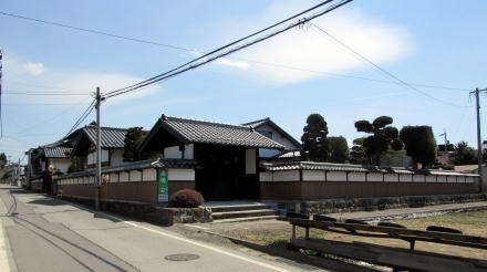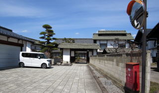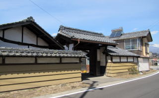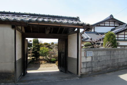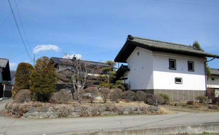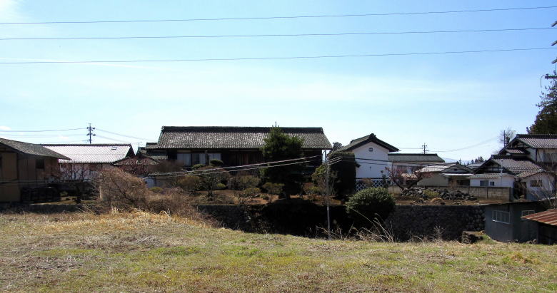 ![]() 中島曲輪跡にある豪農風の構えの広壮な民家。屋敷に裏手の深い谷崖は城郭を囲む堀のような風趣だ。 |